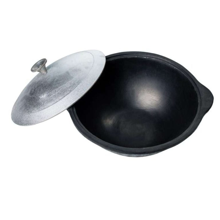 The pot is polished, easy to maintain, with an aluminium lid and a comfortable aluminium handle that will not melt when used in the Kamado grill.
